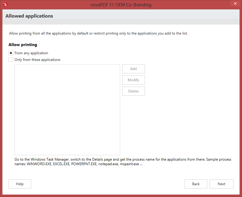 novaPDF OEM Developer includes a Customization tool that lets you configure the novaPDF OEM printer distribution. The novaPDF OEM printer has to be distributed and comes with royalty free licensing. It can be rebranded for an additional fee.